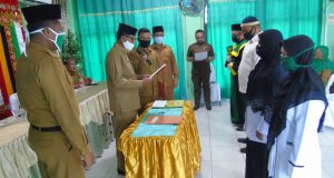 Dengan Protokol Covid-19, Kakankemenag Kab. Aceh Singkil Lantik Tiga Pegawai