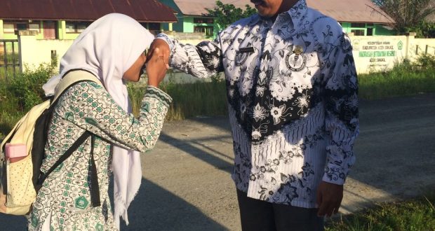 Mulai dari siswa masuk sekolah setelah itu semua siswa mencium tangan semua dewan guru, dan melakukan kegiatan lainya di luar kelas.