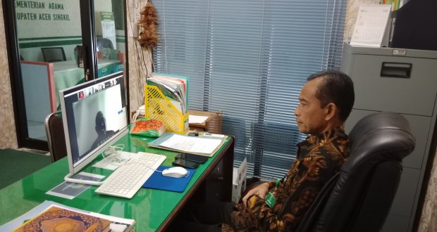 Singkil—Kepala Sub Bagian Tata Usaha (Kasubbag TU) Kantor Kementerian Agama Kabupaten Aceh Singkil dan Bahriansyah, ST selaku Perencana Ahli Muda, mengikuti kegiatan rapat evaluasi dan koordinasi SMART DJA, kegiatan yang digelar Sekretariat Jenderal Kementerian Agama Republik Indonesia. Rabu (10/08/22)