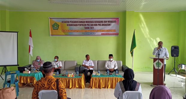 Dan Program Penguatan Moderasi Beragama ini adalah bagian integral dari Rencana Pembangunan Jangka Menengah Nasional. Berangkat dari hal tersebut, Kantor Kemenag Kabupaten Aceh Singkil mengimplementasikan program tersebut melalui pembinaan bagi penyuluh agama Islam fungsional dan non PNS. Dengan mengangkat tema kegiatan bertajuk pengarusutamaan moderasi beragama dan wawasan kebangsaan.