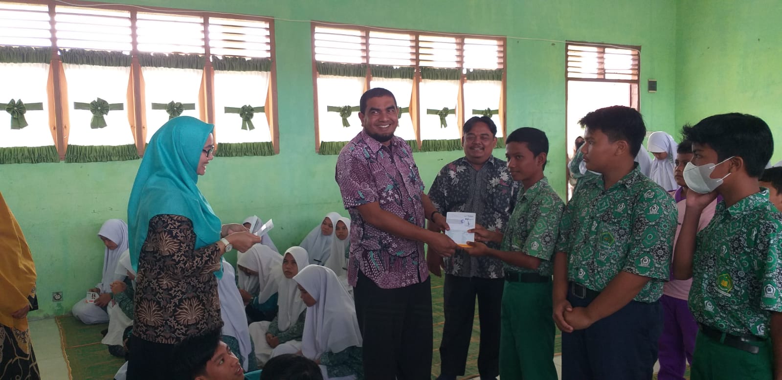 Singkil — (15/06/22) Kepala Kantor Kementerian Agama Kabupaten Aceh Singkil H. Saifuddin, SE menyerahkan dana Bantuan PIP kepada siswa penerima Program Indonesia Pintar (PIP) secara simbolis.