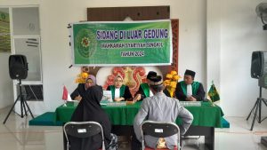 Sidang di luar gedung Mahkamah ini dipimpin langsung oleh Ketua Mahkamah Syar’iyah Aceh Singkil Bapak Anas Rudiansyah, S.H.I, M.H bersama Hakim Choirotun Nisa, S. H.I, M.H dan Zulkarnaini, S. Sy.