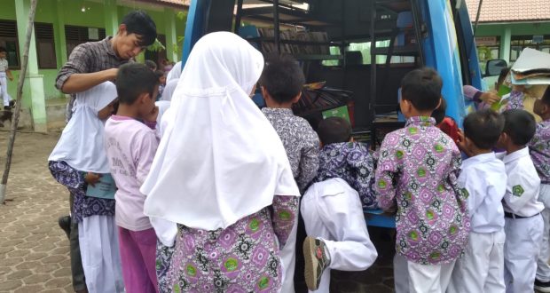 Singkil—Perpustakaan keliling berkunjung dan berhenti selama beberapa jam di MIN 1 Aceh Singkil. Rabu (27/07/2022)
