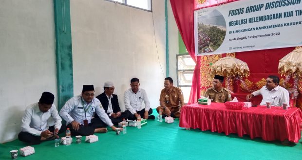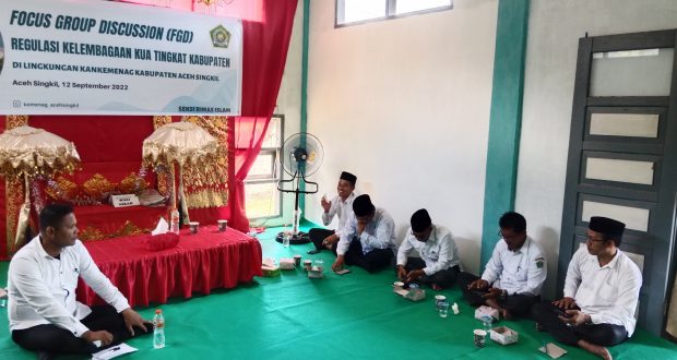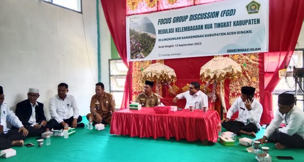 Kuala Baru—Kantor Kementerian Agama Kabupaten Aceh Singkil melalui Seksi Bimas Islam adakan kegiatan Focus Group Discussion (FGD) Peningkatan Lembaga KUA, kegiatan strategis ini diikuti oleh seluruh Kepala KUA Kecamatan dan Penghulu Penyuluh Agama Islam Fungsional serta pelaksana di jajaran KUA Kecamatan Kuala Baru. Kegiatan berlangsung di Ruangan Balai Nikah KUA Kecamatan Kuala Baru, Senin 12 September 2022.